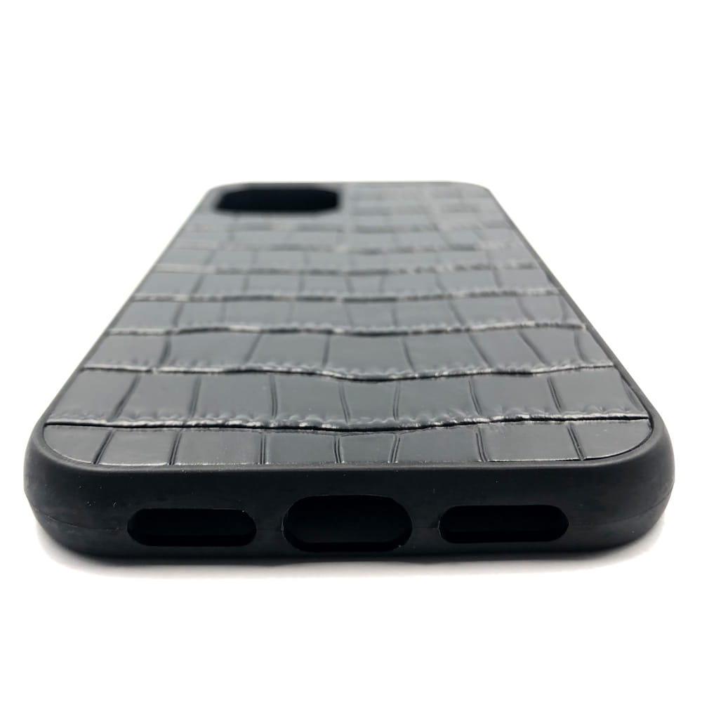 Czarne Porto to case idealny dla wielbicielek elegancji i luksusu. Wykonany jest ze skóry naturalnej i posiada unikatową strukturę krokodylej skóry. Jego lekko ekstrawagancki, a jednocześnie szykowny look z pewnością spełni najbardziej wymagające kobiece oczekiwania. Futerał jest przyjemny w dotyku i jednocześnie pewnie leży w dłoni co zapobiega przypadkowemu wysunięciu się. Dodatkową ochronę przed skutkami ewentualnego upadku zapewnia usztywnienie w wewnątrz etui wykonane z solidnego tworzywa. Natomiast silikonowe, delikatnie podwyższone ranty mają za zadanie chronić ekran oraz obiektyw aparatu przed zarysowaniami. Dodatkowym atutem jest łatwy montaż oraz idealne przyleganie do powierzchni telefonu co nadaje mu lekki i smukły wygląd. Od wewnętrznej strony wyściełane jest delikatną mikrofibrą stanowiącą dodatkową ochronę przed zarysowaniami i niszczeniem. Case jest wykonany pod dedykowany model telefonu, w związku z czym posiada odpowiednie wycięcia na wszystkie gniazda, porty i przyciski funkcyjne.